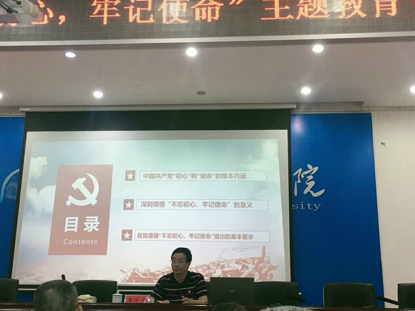 10月17日下午四点半,在西校区43D二楼学术报告厅进行了“不忘初心,牢记使命”主题教育党课学习,本次党课由校党委委员、常务副校长李敏主讲。机电工程学院、文化传媒学院全体党员、预备党员、入党积极分子、以及思想要求积极进步已申请入党的同学一同参加了本次的党课学习。 …