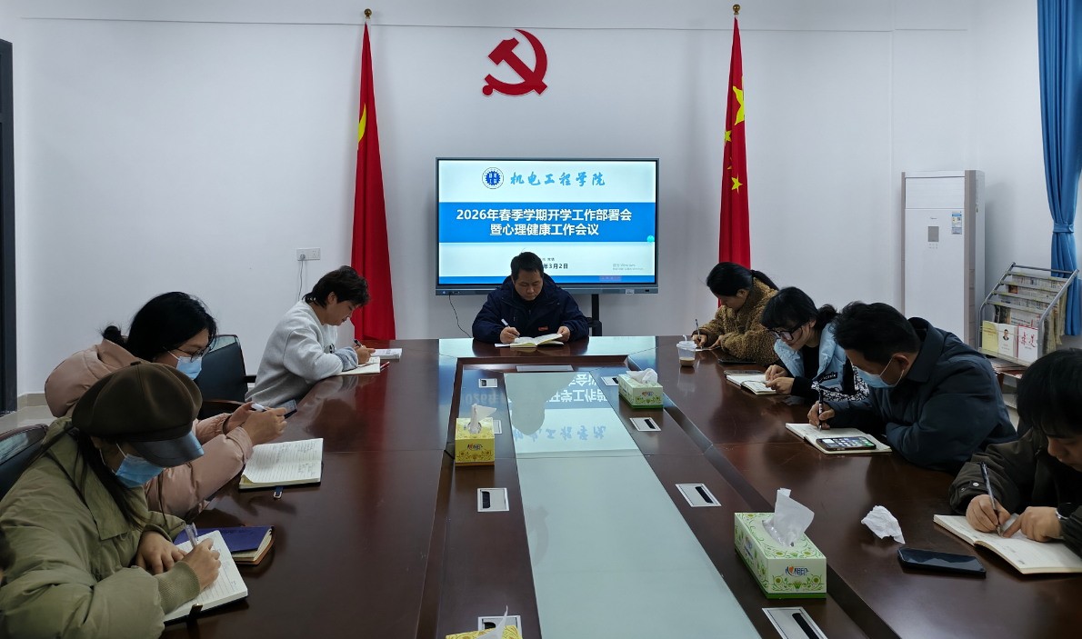 为统筹推进新学期学生教育管理工作,确保各项开学工作平稳有序开展,进一步强化学生心理健康教育,3月2日,机电工程学院召开2026年春季学期开学工作部署会暨心理健康工作会议。会议由党总支副书记杨治华,学院全体学工人员参加会议。