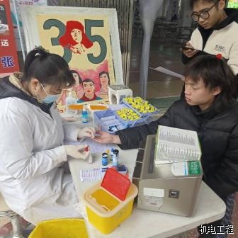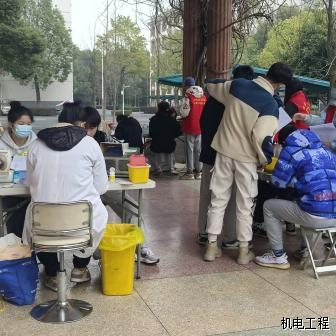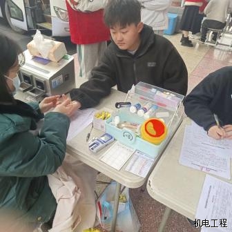2022年3月5日,湖南应用技术学院联合常德市中心血站,在西校区进行“3.5”学雷锋无偿献血志愿服务活动,掀起了一场无偿献血的爱心热潮。此次爱心献血活动机电工程学院团总支踊跃参与,自愿为社会奉献一份爱心。
