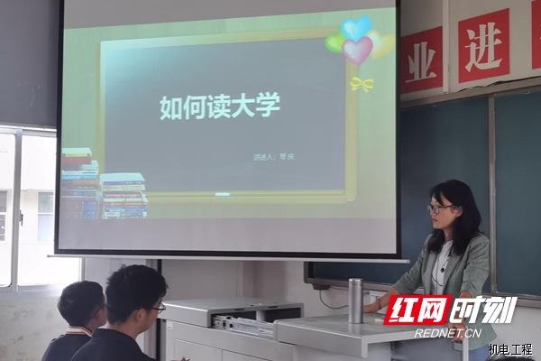 湖南应用技术学院机电工程学院辅导员琴庆正为新生讲授第一堂课。