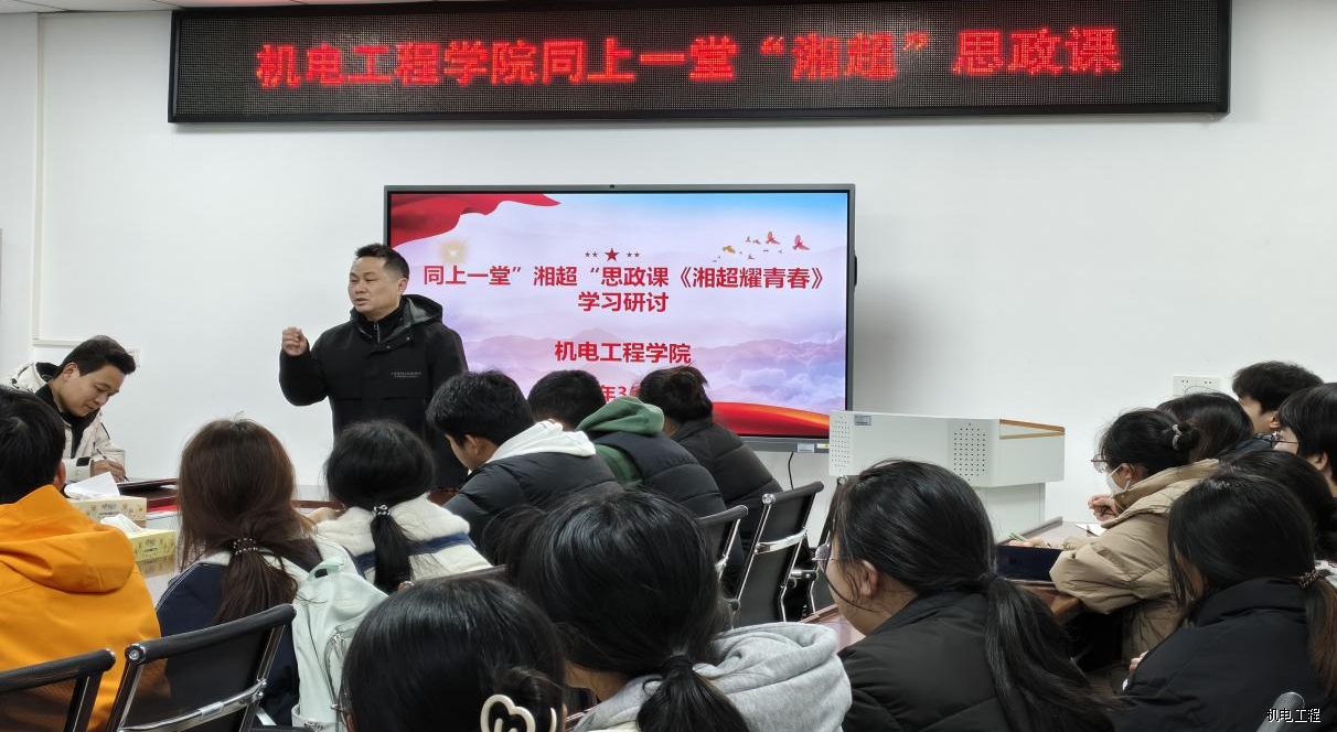 (通讯员:刘振亚)为深入推进大思政课建设,把体育精神、奋斗精神融入青年思想引领,3月18日晚8点,机电工程学院组织党员、入党积极分子、团学干部集中观看《湘超耀青春》特别节目,同上一堂生动鲜活的“湘超”思政课。学院党总支副书记杨治华、学生第一党支部书记刘振亚参加活动。