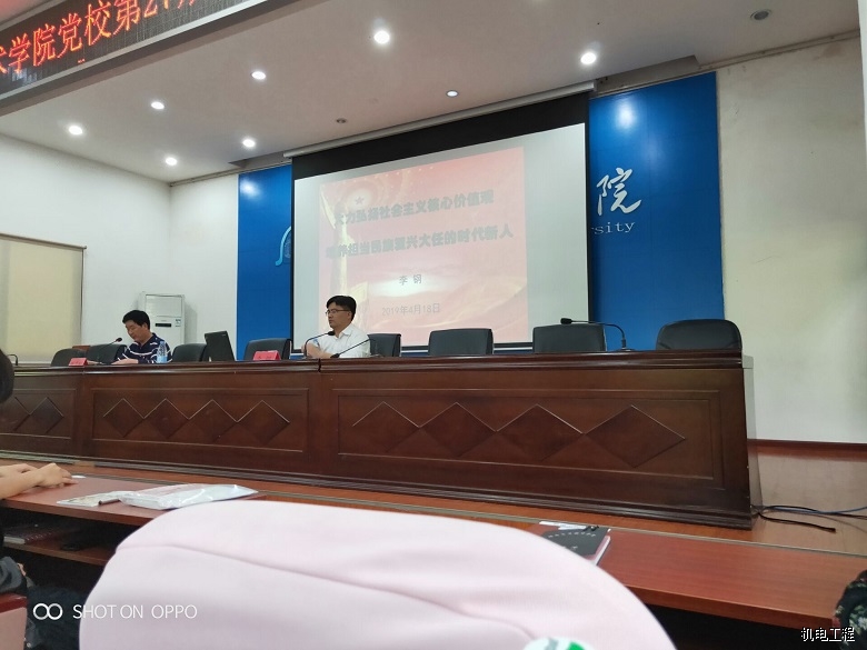 为了响应学校党支部的号召,学校特意邀请了党委书记李钢在广言堂二楼为第27期入党积极分子上一次关于“大力弘扬社会主义核心价值观,培养担当民族复兴大任的时代新人”的党课。