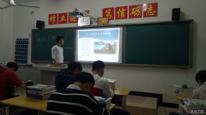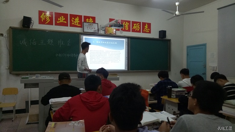 5月9日晚7点,机电工程学院机制B1701班全体成员于21栋201教室集中开展诚信教育主题活动。